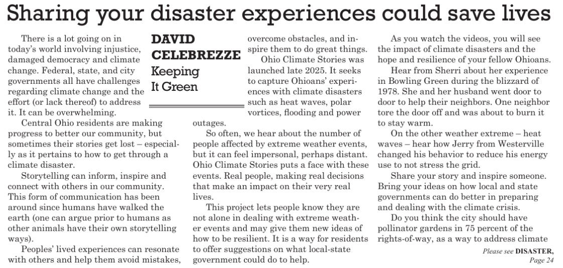 Thanks, Dave Celebrezze! OhioClimateStories.org